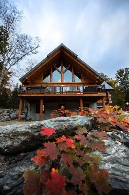 Modèle 30 x 32 conçu avec une annexe en bois rond pour loger la cuisine. Connexion à cette dernière avec une finition en arche réalisée par nos ébénistes expérimentés.